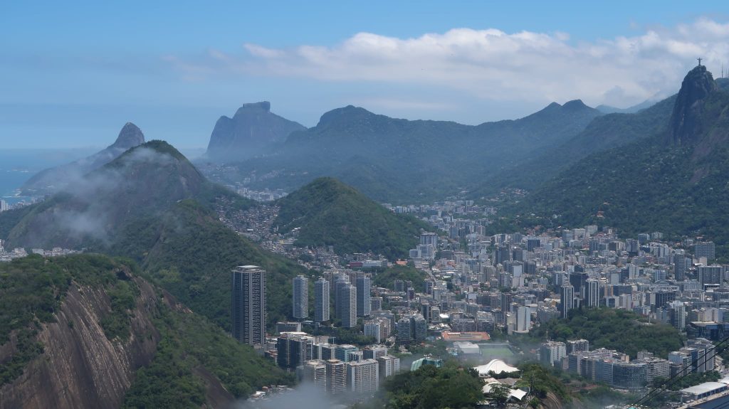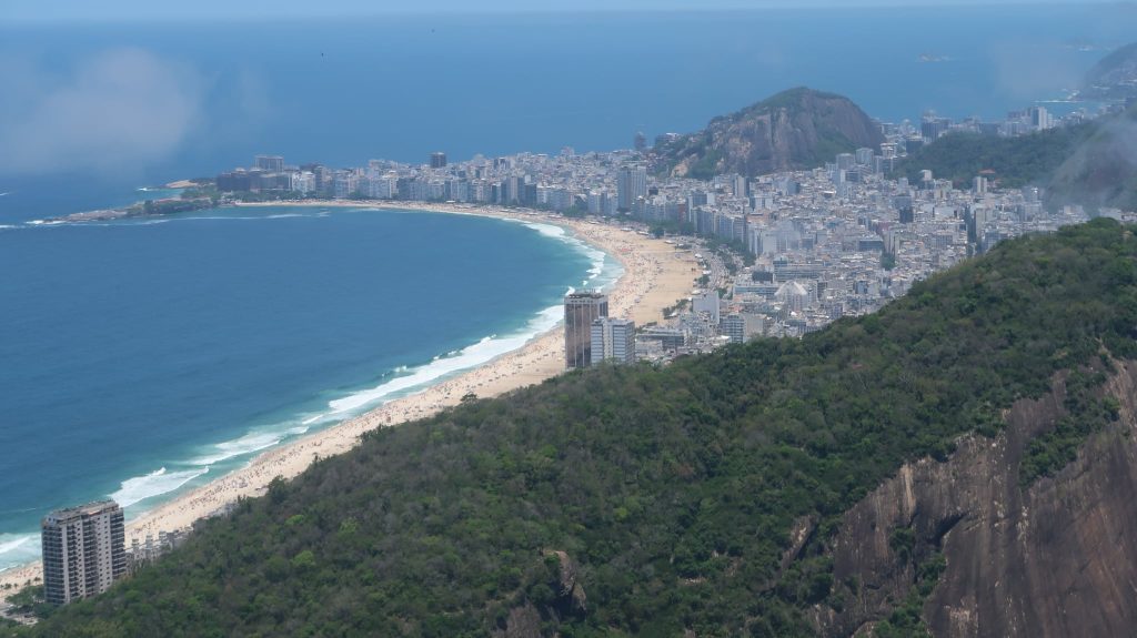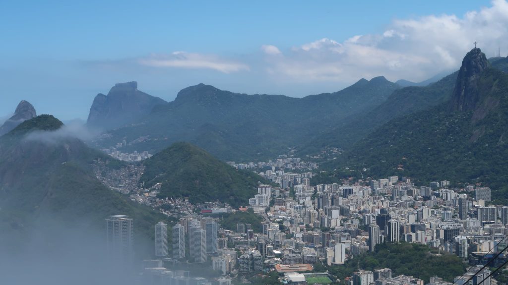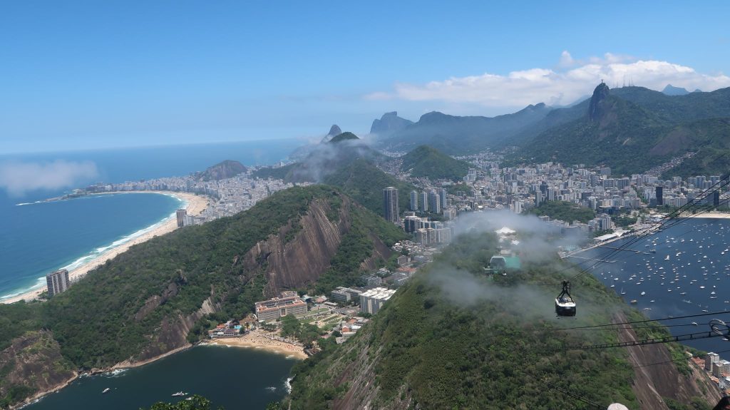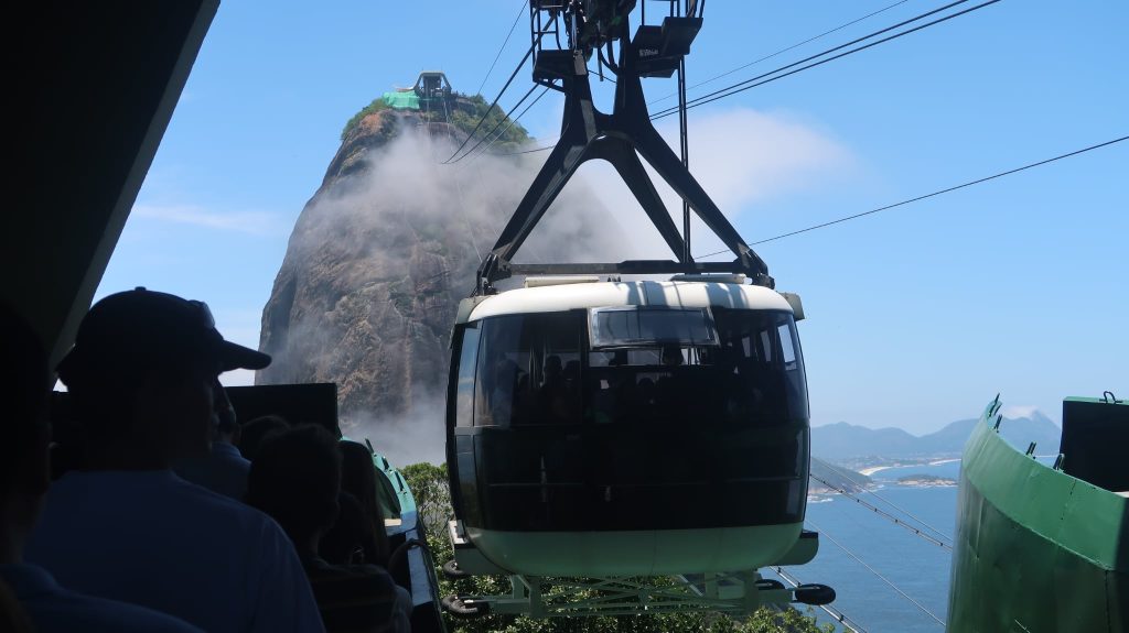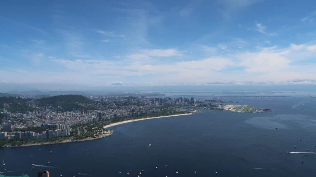 Έχοντας το πλήρες εισιτήριο συνεχίσαμε τη μικρή πορεία μας για την αφετηρία του επόμενου βαγονιού. Επιβίβαση και πορεία ακόμα πιο ψηλά. Στα σχεδόν 400 μέτρα ύψος, υπάρχει μια άλλη μικρή κοινωνία με καταστήματα όπως τον προηγούμενο λόφο. Η “μάχη” μεταξύ τουριστών για την καλύτερη λήψη γίνεται σε κάθε κενό σημείο που μπορεί να απολαύσει τη θέα κανείς. Οπουδήποτε και να κοιτάξει κανείς το βλέμμα χάνεται. Από τη μία τα νησάκια απέναντι από την Ιπανέμα, η Κοπακαμπάνα, το άγαλμα του Ιησού απέναντι, η πόλη του Ρίο, το αεροδρόμιο και κάθε σχεδόν συνοικία της πόλης.