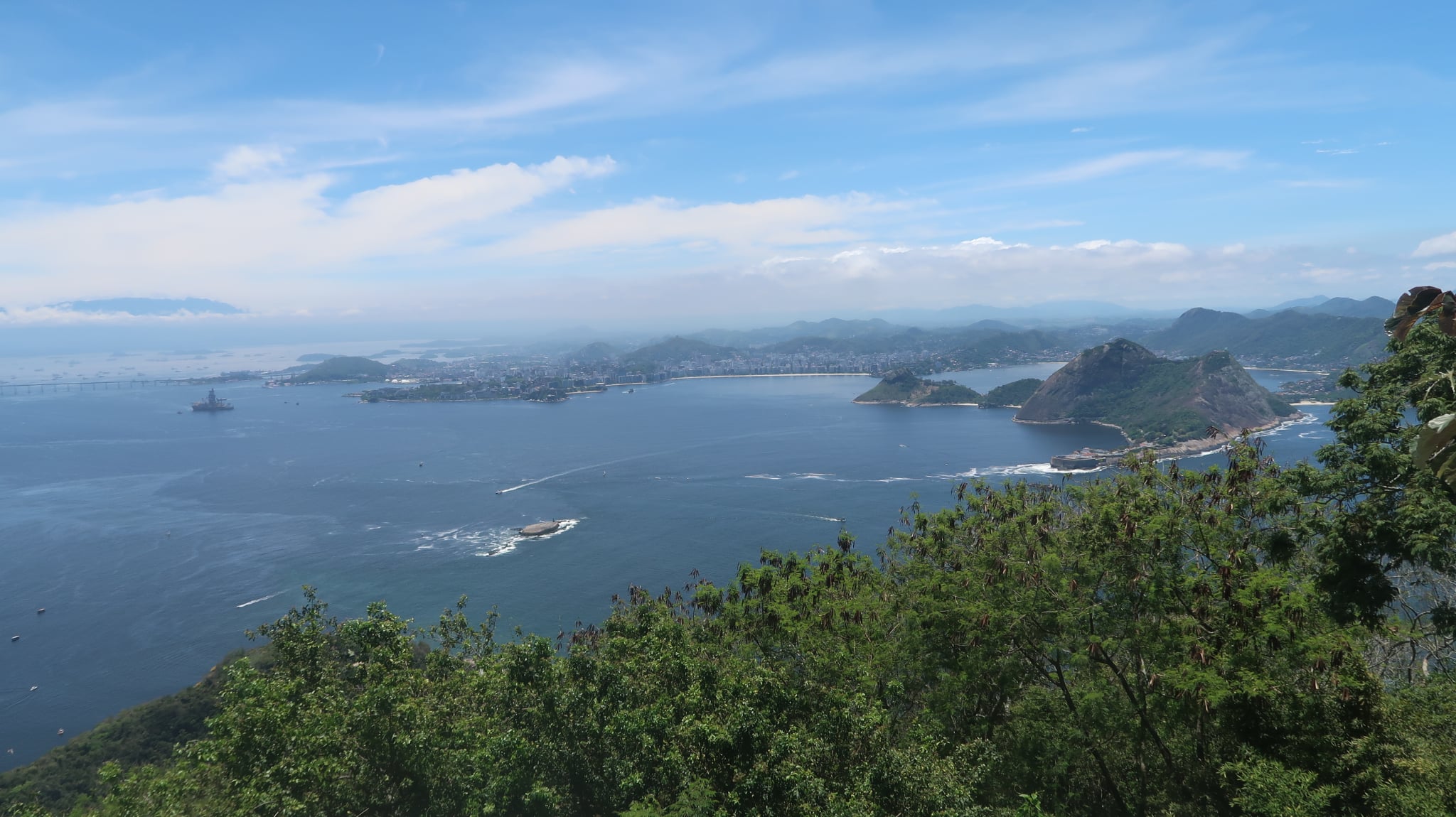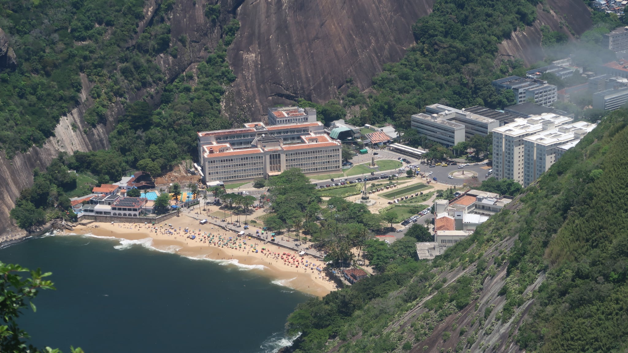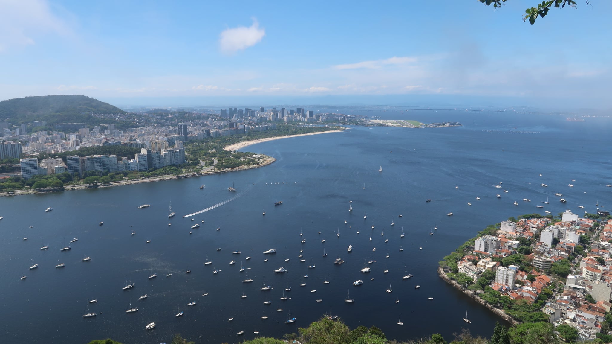 Έχοντας το πλήρες εισιτήριο συνεχίσαμε τη μικρή πορεία μας για την αφετηρία του επόμενου βαγονιού. Επιβίβαση και πορεία ακόμα πιο ψηλά. Στα σχεδόν 400 μέτρα ύψος, υπάρχει μια άλλη μικρή κοινωνία με καταστήματα όπως τον προηγούμενο λόφο. Η “μάχη” μεταξύ τουριστών για την καλύτερη λήψη γίνεται σε κάθε κενό σημείο που μπορεί να απολαύσει τη θέα κανείς. Οπουδήποτε και να κοιτάξει κανείς το βλέμμα χάνεται. Από τη μία τα νησάκια απέναντι από την Ιπανέμα, η Κοπακαμπάνα, το άγαλμα του Ιησού απέναντι, η πόλη του Ρίο, το αεροδρόμιο και κάθε σχεδόν συνοικία της πόλης.